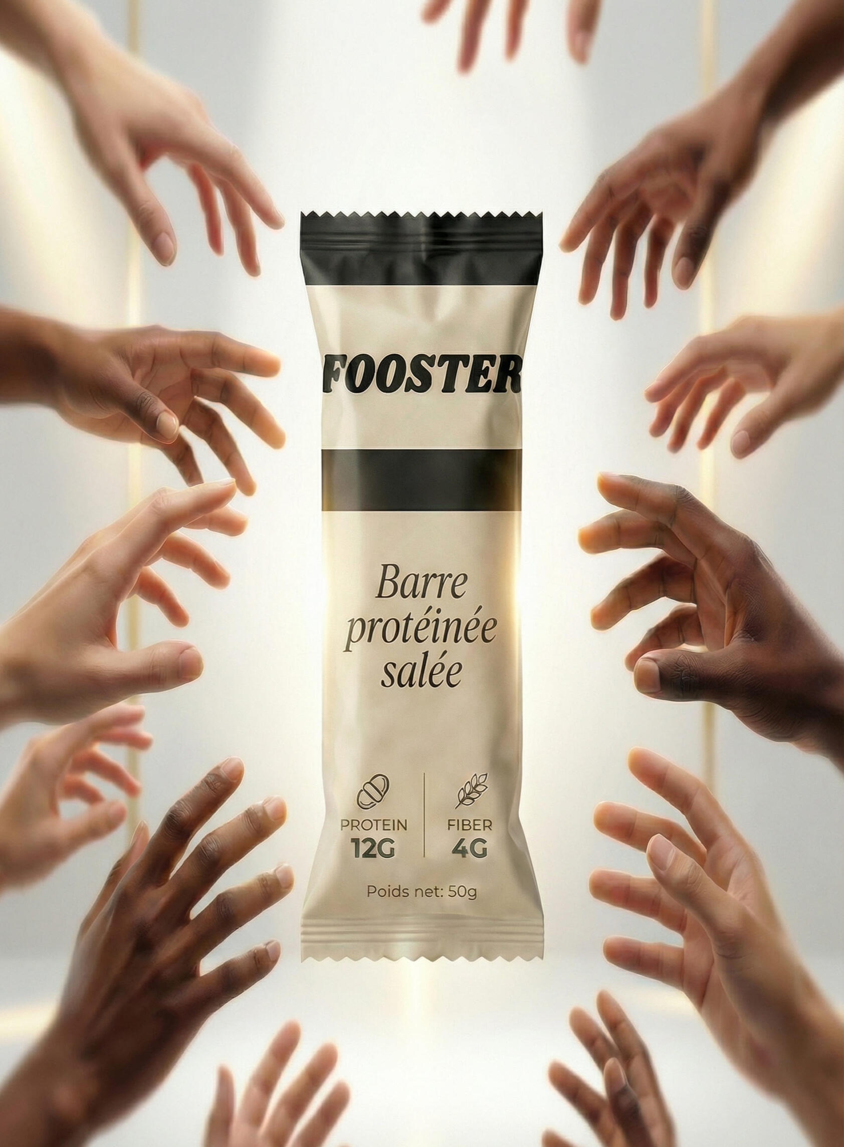 Chaque barre Fooster combine des ingrédients naturels à des apports nutritionnels précis pour offrir un vrai snack salé, pratique et savoureux.Nos arômes 100 % végétaux sont travaillés pour recréer des profils salés chaleureux, inspirés de la cuisine ,sans aucune viande, uniquement grâce à la richesse aromatique du végétal.Une expérience salée, gourmande, et totalement clean, dans un format nomade.